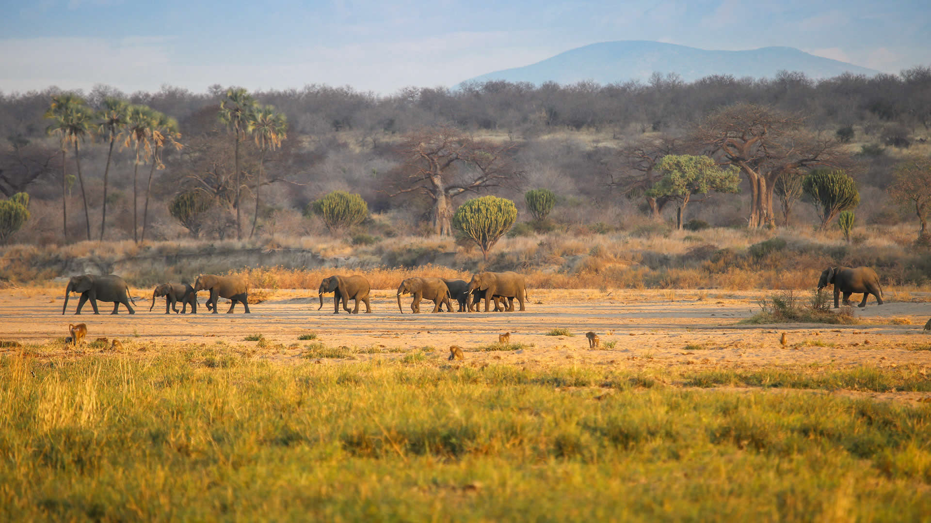 Ruaha National Park is an unspoiled wilderness famed for its large number of elephants. In fact, aside from rhinos, most major safari animals are easily seen here. Large prides of lion, sometimes counting more than 20 individuals, roam the park and even buffalo, an unusual prey, isn't safe here. The main geographical feature of Ruaha’s untamed wilderness is the Great Ruaha River with its sandy tributaries. Away from the river, miombo woodland is interspersed with savannah grassland dotted with ancient baobab trees and rocky outcrops.